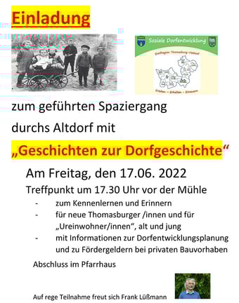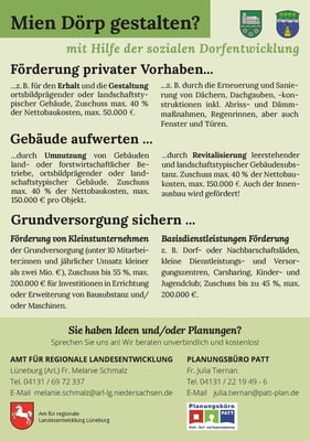 Wir laden Sie ein, zusammen mit uns den Neuauftakt der Dorfentwicklung zu feiern. Neben einem leckeren Buffet, Spiel und Spaß können Sie sich die Ideen und Wünsche für die Dorfregion Thomasburg - Vastorf ansehen, sich über die Fördermöglichkeiten im Rahmen der Dorfentwicklung informieren und die DorfApp Thomasburg-Vastorf kennenlernen.