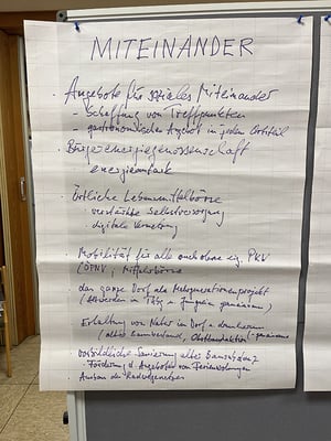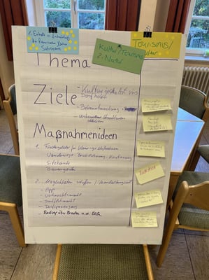 Methode: Zwei Gruppen arbeiteten zu den Fragestellungen: 1. Was haben wir schon in den beiden Gemeinden umgesetzt? 2. Was gibt es für weitere Projektideen?